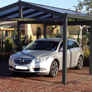 Stoginė automobiliui\pigesnė, ekonomiškesnė, greitesnė alternatyva garažui. Tokia stoginė taip pat puikiai apsaugos jūsų automobilį nuo krentančių lapų, spyglių, saulės kaitros, sniego ar nemalonaus langų gramdymo šaltais žiemos rytais.Mūsų įmonėje gaminamos stoginių automobiliams konstrukcijos, pagamintos iš aukščiausios kokybės Švediško aliuminio profilio.