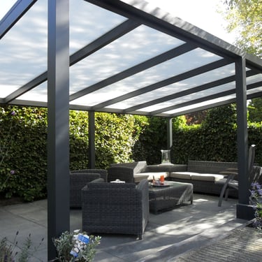 Naudojama 16 mm S klasės kanalinė polikarbonato danga, kuri gali būti trijų atspalvių: skaidri, balta matinė, bronzinė.