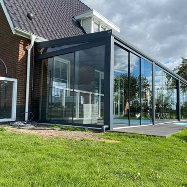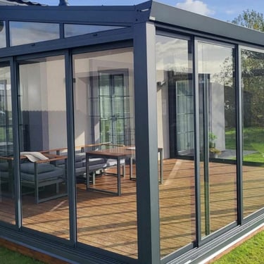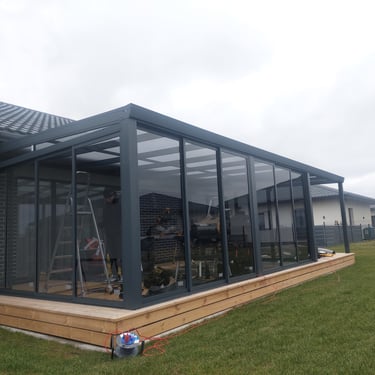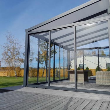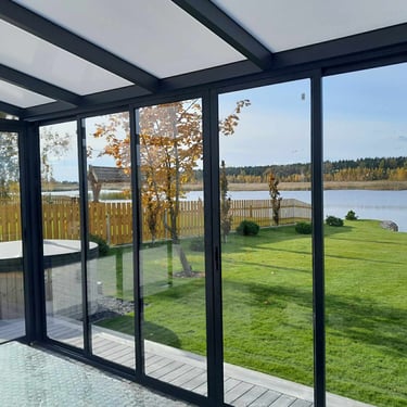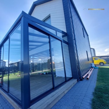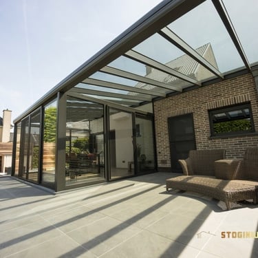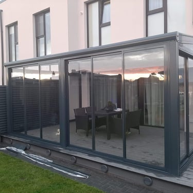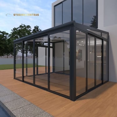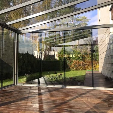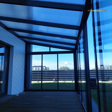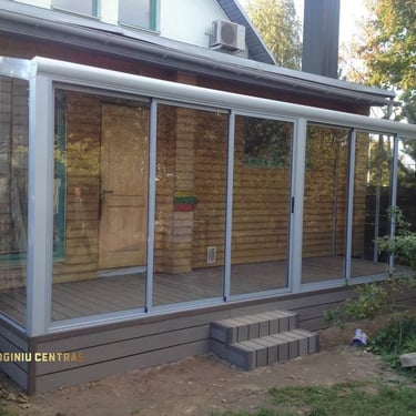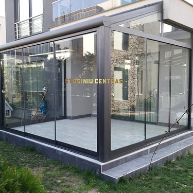 Terasų stoginių, verandų stiklinimas aliuminio sistemomis.Mes siūlome stoginių, pastogių sienelių stiklinimą rėminėmis ir berėmėmis stumdomomis aliuminio sistemomis su 4mm arba 10mm grūdintu stiklu.Tai reiškia,kad galite konvertuoti mūsų stoginę i verandą.